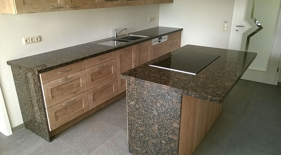 Unsere Natursteinprodukte zeichnen sich durch makellos polierte Oberflächen aus und sind daher die perfekte Wahl für Küchenanwendungen. Ob eine luxuriöse Arbeitsplatte aus Marmor oder eine elegante Aufkantung aus Granit, unser Angebot an Natursteinoptionen wird die Ästhetik jeder Küche aufwerten. Diese polierten Oberflächen strahlen nicht nur eine zeitlose Eleganz aus, sondern bieten auch eine dauerhafte und pflegeleichte Lösung für stark beanspruchte Küchen. Mit unseren Natursteinprodukten können Sie eine atemberaubende und funktionelle Küchenumgebung schaffen, die Gäste und Familienmitglieder gleichermaßen beeindruckt.